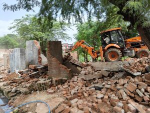 કાલોલ નગરપાલિકા વિસ્તારમાં આવેલ આશિયાના સોસાયટી સામે સરકારી પડતર જમીનમાં 19 ઇસમો દ્વારા ગેરકાયદેસર દબાણ કરેલ હતું. આજરોજ આ ઘેરકાયદેસર દબાણો સરકારી તંત્ર દ્વારા ડિમોલેશન કરી તોડી પાડવામાં આવ્યા હતા. આ કેસની હકીકત એવી છે કે મોજે કાલોલ સર્વે નંબર 1797 હેઆરે પ્ર ઝીરો 23 81 તથા સર્વે નંબર 1798 હે આરે પ્ર ઝીરો બાર 41 વાળી જમીનનો સીટી સર્વે નંબર સ. નં. 2043 તથા 2042 વાળી સરકારી જમીન પર કેટલાક વર્ષોથી સામેવાળાઓએ દબાણ કરેલ હોય તેઓની સામે મુંબઈ જમીન અધિનિયમ મહેસુલ મહેસુલ 1879 ની કલમ 61 હેઠળ પગલા લઈ કરેલ દબાવવાનું ખુલ્લું કરવા તેમજ ધોરણ સરનો દંડ વસૂલ કરવા અત્રેની મામલતદાર કચેરી દ્વારા ડિમોલેશનની કામગીરી કરાઈ હતી. આ સર્વે દબાણકારો પર 27-06-2025 ના રોજ મુદ્દતે હાજર રહેવા જાણ કરવામાં આવી હતી. દબાણ કરતાં મુદતે હાજર રહી દબાણ બાબતે કોઈ ચોક્કસ પુરાવા તેઓ દ્વારા રજુ કરવામાં આવેલ ના હતા. પુરાવાની ખાતરી કરતા જમીન તેમના માલિકીની હોવા અંગેના કોઈ પુરાવા મળ્યા નથી કે કોઈ આધાર તેમની પાસેથી મળેલ નં હતો જેના કારણે સીટી સર્વે નંબર 2043 અને 2042 વાળી જમીનમાં દબાણ કરેલ હોવાનું સ્પષ્ટ જાહેર થયું હતું જેના કારણે આજરોજ કલેકટર અને પ્રાંત સાહેબના આદેશ અનુસાર કાલોલ મામલતદાર દ્વારા ડિમોલિશનની કામગીરી હાથ ધરાઈ હતી, જેમાં તમામ 19 દબાણ મકાનો ઉપર કાલોલ મામલતદાર દ્વારા ડિમોલેસનની કામગીરીથી આ સરકારી પડતર જમીનમાં આવેલા દબાણ દૂર કરાયા હતા. હમણાં જ તાજેતરમાં કાલોલ નગરપાલિકાની ચૂંટણીમાં નગરપાલિકામાં જીતનાર ઉમેદવારો આ વોર્ડ નંબર 5 ના ઉમેદવારો દ્વારા આ સોસાયટી અને દબાણ કરતા ઓને વોટ લેવા માટેના ખોટા વચનો આપી આ દબાણ નહીં તૂટે તેવી ખાતરી આપી પ્રજાને ઘેર માર્ગે દોરી હતી. ચૂંટણીના સમયે આપેલા ખોટા વચનોના કારણે ગેરકાયદેસર રહેવા માટે પ્રોત્સાહિત કર્યા હતા જેના કારણે આજે તેમનો રડવાનો વાળો આવ્યો છે જે નગરમાં ટોક ઓફ ધ ટાઉન બન્યો છે.