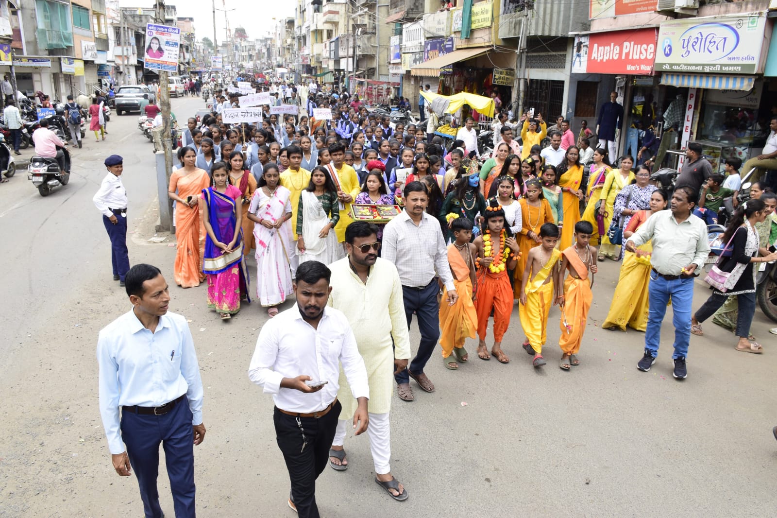 રેલીમાં બાળકો વિવિધ બેનરો અને પ્લે કાર્ડ મારફતે જ્ઞાનના અમૃતભંડારરૂપ પ્રથમ વેદ ‘ઋગવેદ’ તથા તેના મંડળો,જેમાં સમાવિષ્ટ સ્તુતિરૂપ મંત્રો ઋષાઓ અને યજ્ઞની વિધિઓનો વિગતવાર ઉલ્લેખ કરતો ‘યજુર્વેદ’ સહિતના અનેક વેદો અંગે લોકોને જાણકારી આપી લોકસંદેશ પ્રસરાવી રહ્યા હતા. બાળકોએ ઋષિમુનીઓના વેશભૂષા-પોષાકથી ભારતની પ્રાચીનતમ સંસ્કૃતિની ઝલકને પ્રતિબિબિંત કરી હતી.