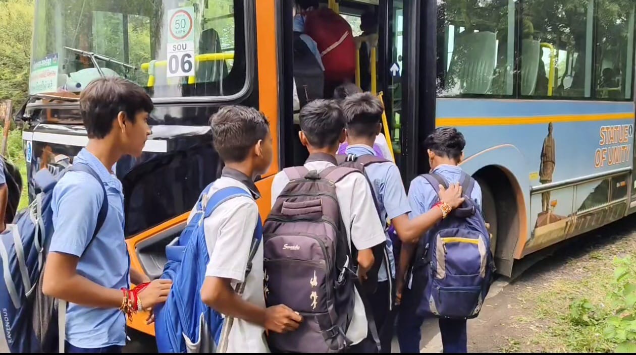 નર્મદા જિલ્લાના એકતાનગર ખાતે અનિયમિત બસોના કારણે શાળાએ જવાની પડતી સમસ્યાનો હલ આવ્યો. એકતાનગરના 19 ગામના 250 વિદ્યાર્થી માટે 20 AC ઈ-બસની સેવા શરૂ કરાતા વિધાર્થીઓ અને વાલીઓમાં અનેરો ઉત્સાહ જોવા મળ્યો છે.