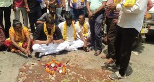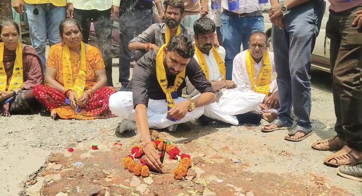 રાજપીપલા સ્ટેશન રોડ પર આમ આદમી પાર્ટીની ટીમ દ્વારા ખાડા પૂજન કરીને તંત્ર સામે અનોખો વિરોધ પ્રગટ કર્યો હતો.જેમાં ભગવાન આ ભાજપના નેતાઓ અને તંત્રને સદ્બુદ્ધિ આપે તેવી પ્રભુને પ્રાર્થના કરવામાં આવી હતી.