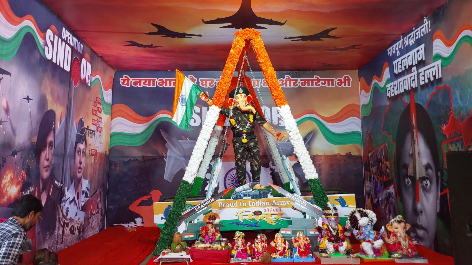 – ભગવાન શ્રી ગણેશની પ્રતિમાને આર્મીનો યુનિફોર્મ પહેરવામાં આવ્યો